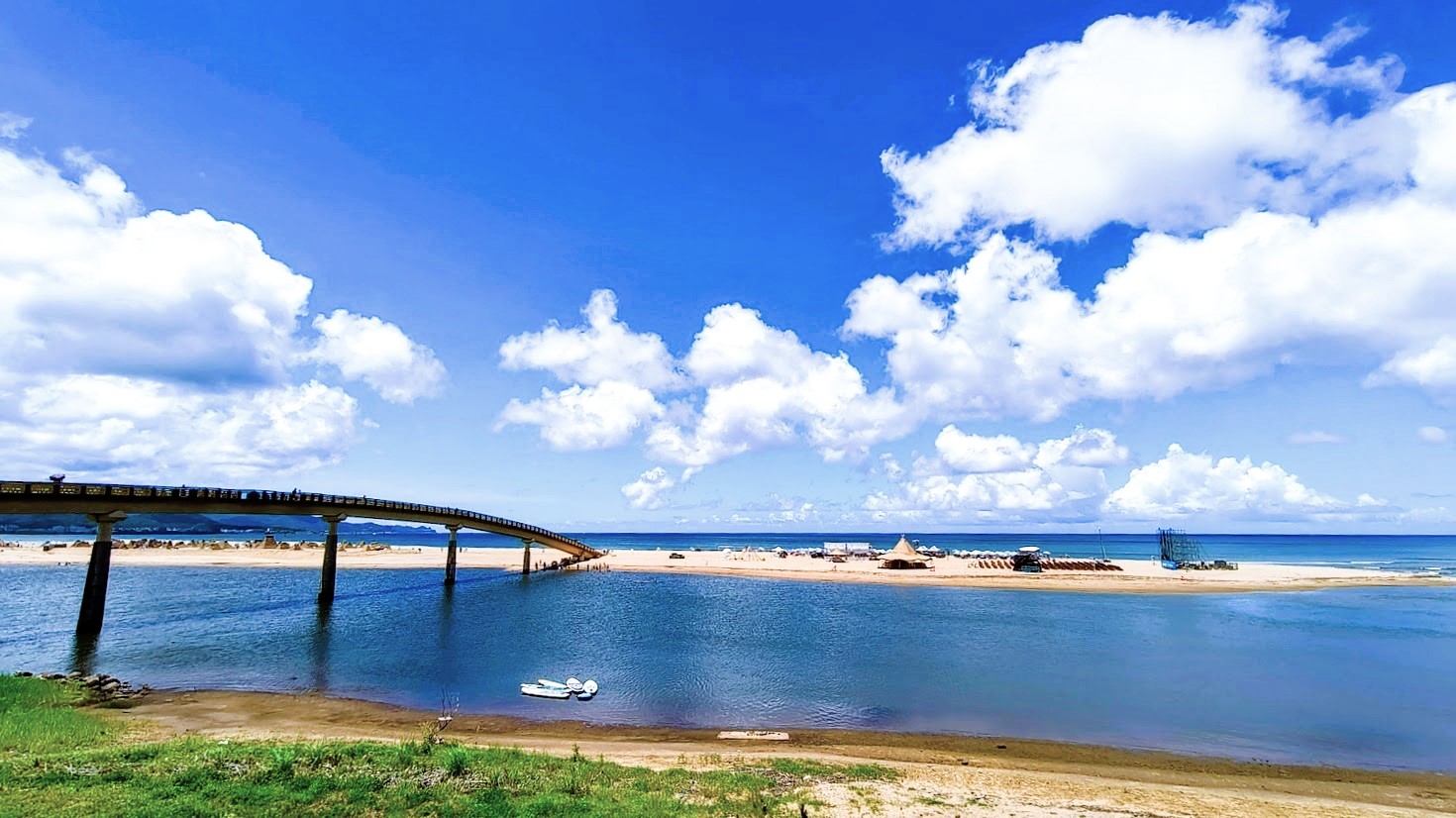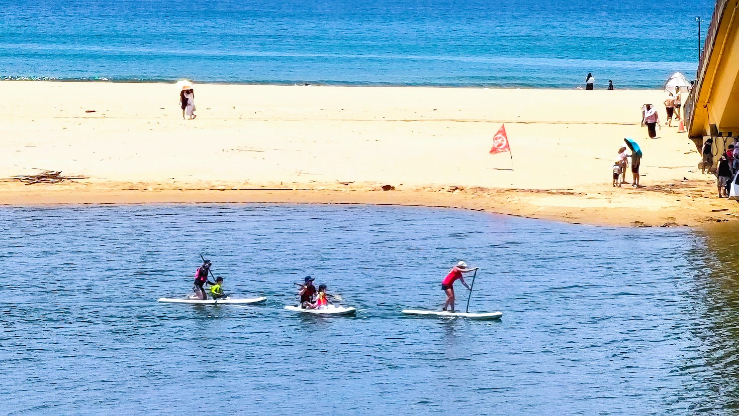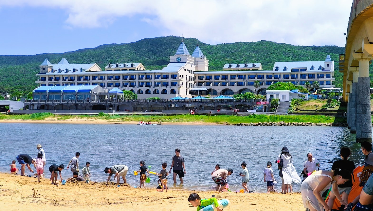 中午時分,我們搭火車前往福隆。一下車就感受到濱海的鹹濕海風。海水浴場裡滿是踏浪戲水的遊客,我們換上涼鞋踩進沙裡,感受太陽下炙熱卻自由的海岸氣息。