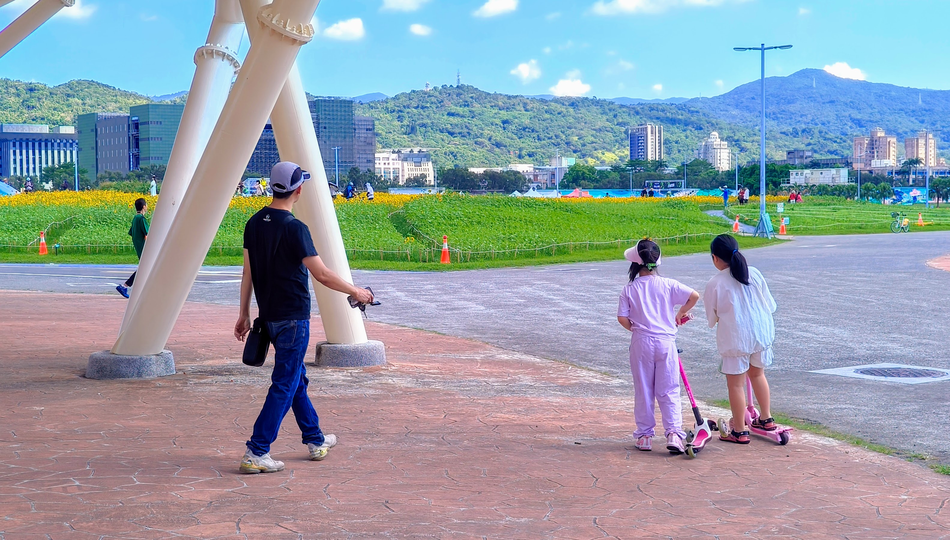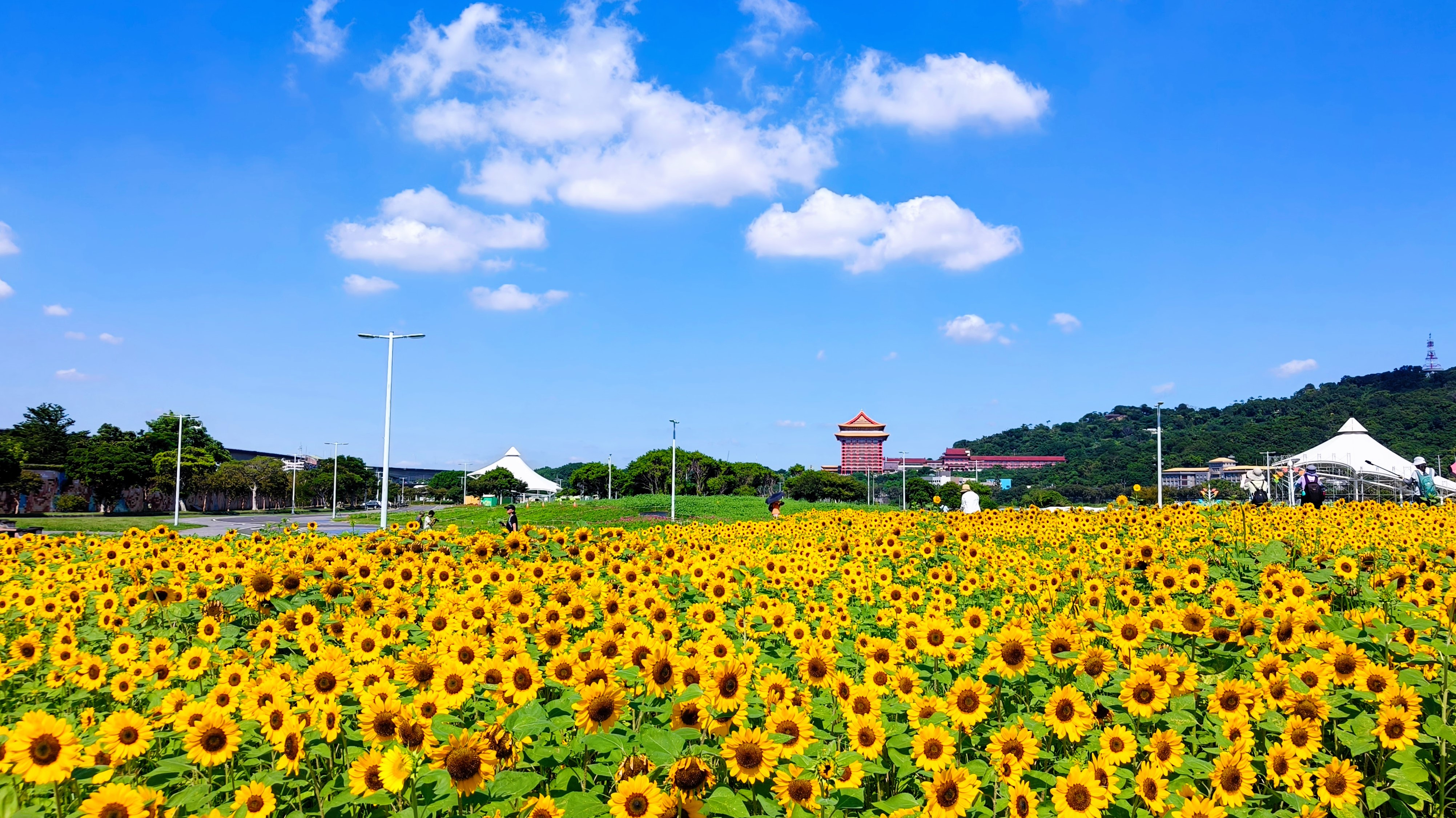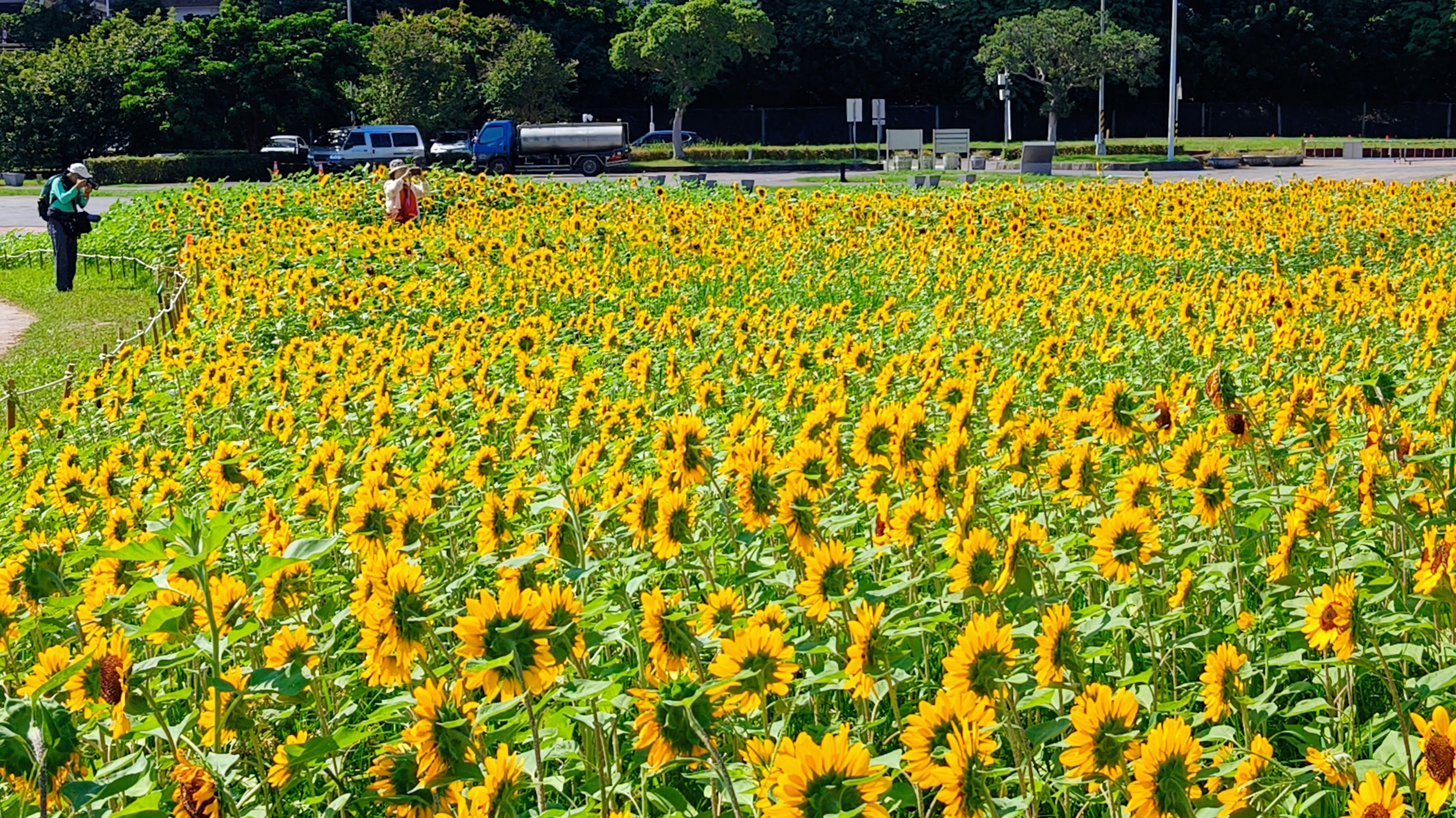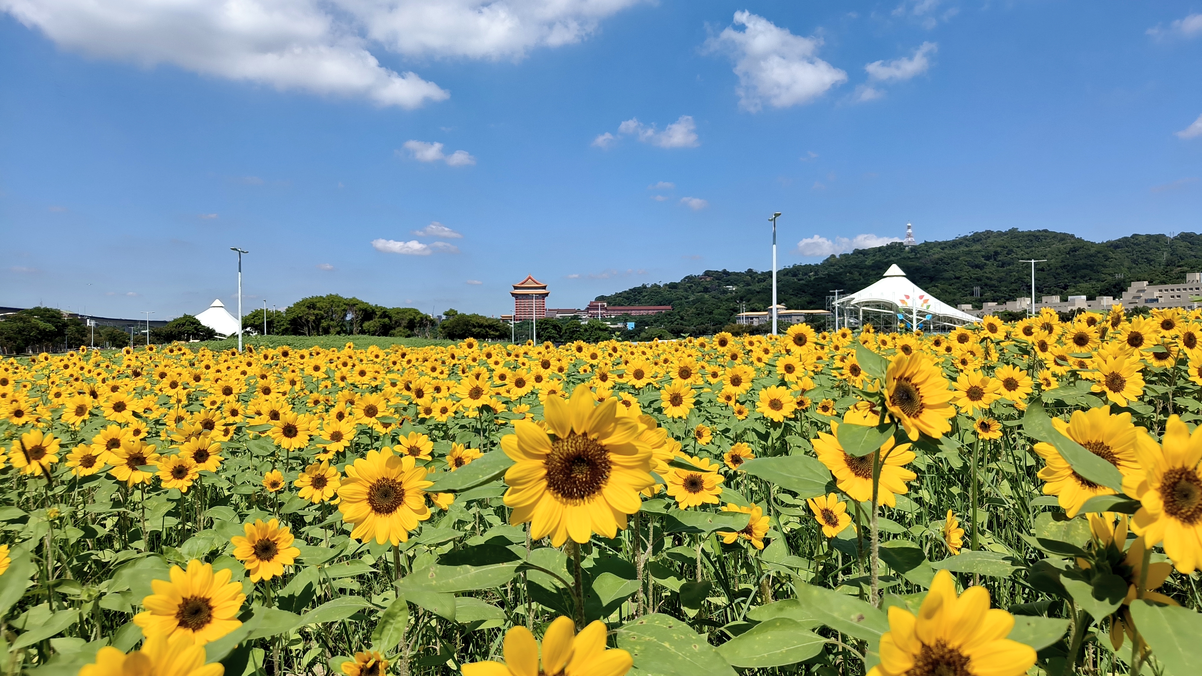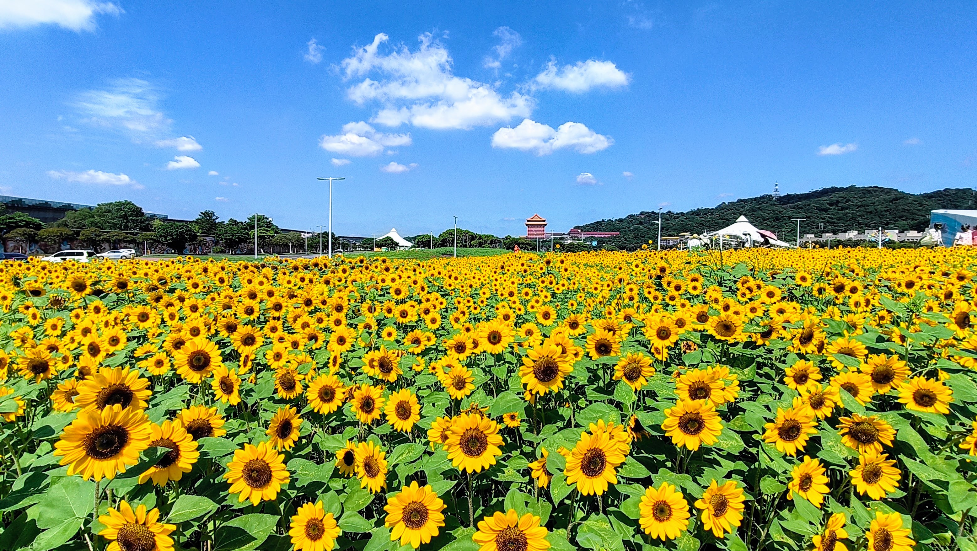 夏天的大佳河濱公園最吸睛的,就是這片 太陽花海(別稱:向日葵、朝陽花、日頭花、望日蓮、 葵花)。這裡種植了超過 18 萬株 向日葵,盛開時真的就像一片金黃色的海洋,隨風搖曳好壯觀。雖然花期會依市府播種調整,但大約在 9 月中到 9 月底 是最美的時候。上週六我去的時候,花海幾乎滿開,整個園區燦爛極了!