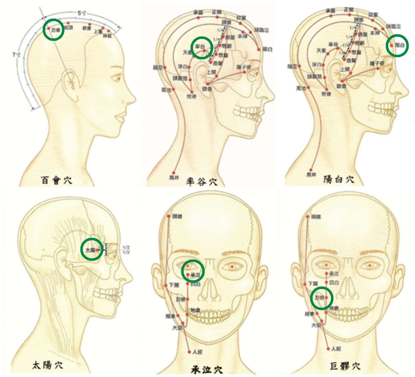 率谷穴( 耳尖直上,入髮際約一寸 )