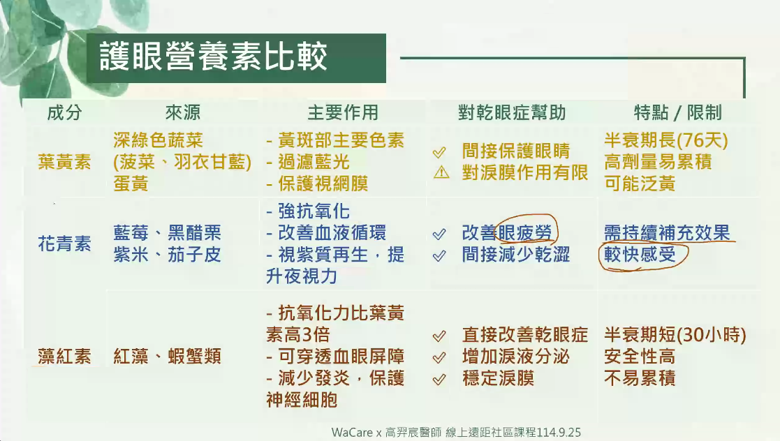 - 功效:增加淚腺分泌、減緩眼乾疼痛