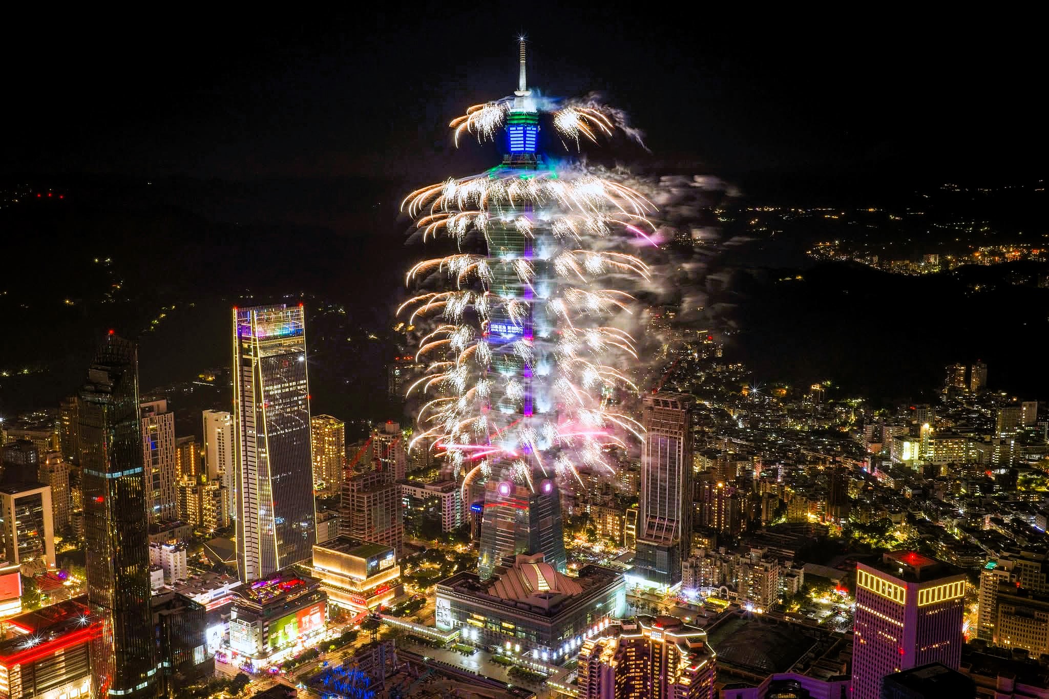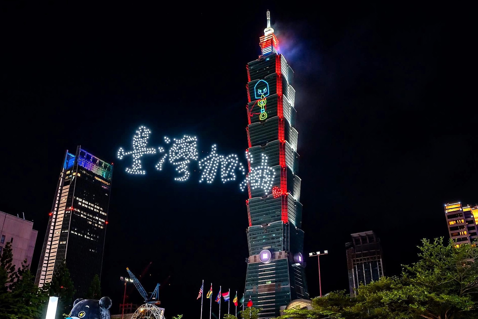 台北101國慶煙火結合無人機 致敬鏟土志工 台灣加油 中華民國加油