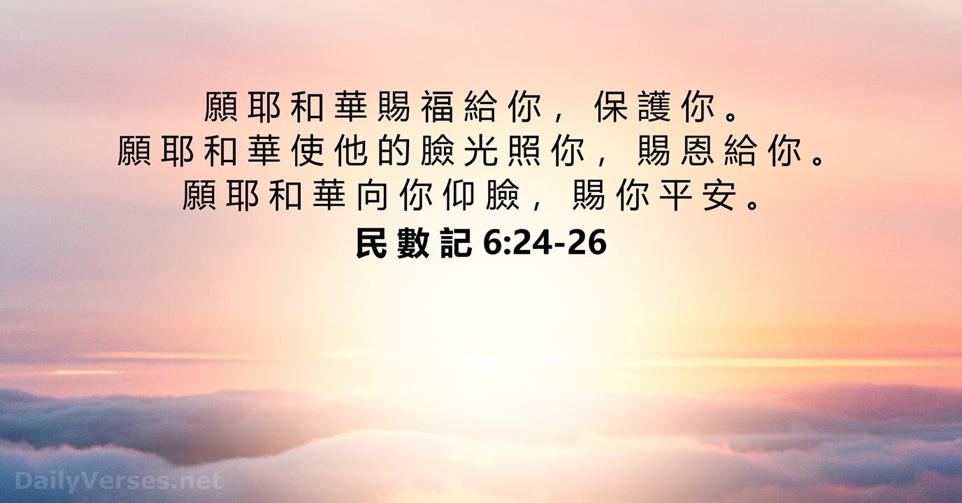 願耶和華向你仰臉,賜你平安。(民數記 6:24-26)