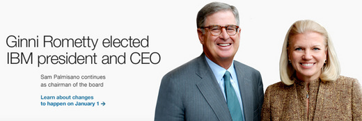 全球最大電腦服務業者IBM宣布,全球銷售主管羅梅娣(Virginia Rometty)明年1月1日將出任執行長,取代2002年任職迄今的帕米沙諾(Sam Palmisano)。這也是IBM創立百年來首位女執行長。