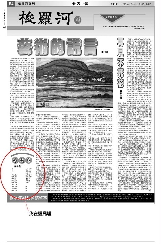 本詩刊登 世界日報 梭羅河合副刊 2007.1.14.