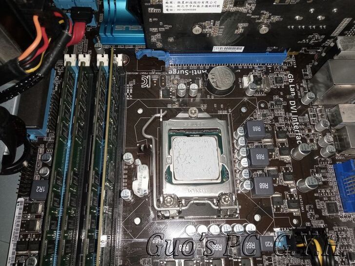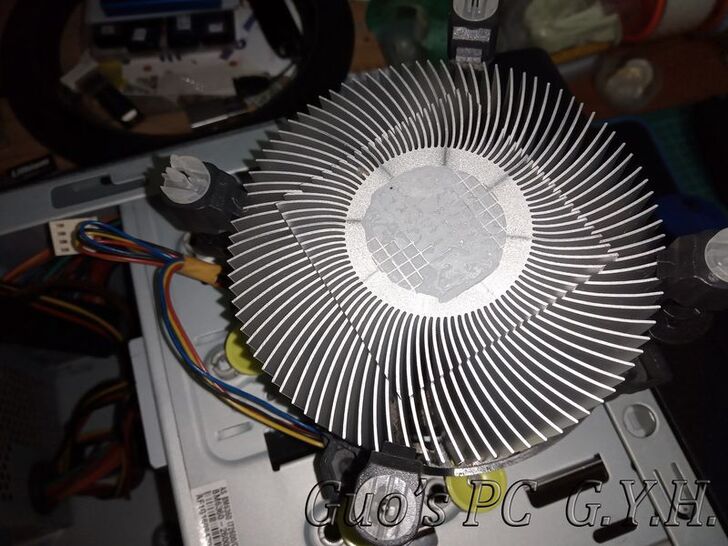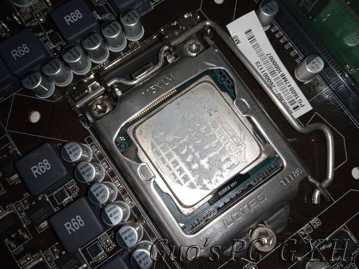 照片留存可見~散熱器出場就沒裝好完場的散熱膏狀況~這樣導熱都不好了U沒燒掉算是幸運