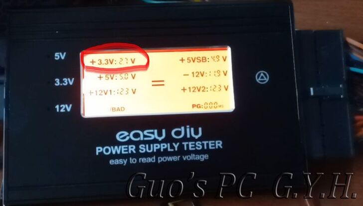 處理完還是會先測試總覺得有問題~懷疑POWER有問題原本只有用最一般的檢測器~但為了詳細查找就買了個新的檢測器一檢查~果然沒錯~3.3V出問題了只有2.7V~其實可拿電錶量