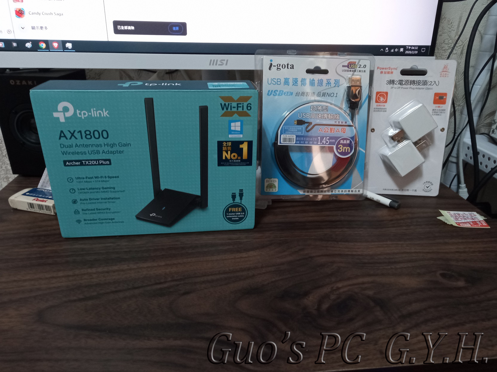 2026過年回家把十年前的四代I5-4570主機搞回老家使用~但是原本用的TOTO無線網卡連接只有訊號一兩格速度也不到不知出啥問題~另一台I5-4460一樣效能不好~但是裝到筆電訊號是滿格~攤手~雖然自己已經試過幾種可能發生問題但依舊無法解決~於是就近燦坤購買TP-LINK TX20U PLUS使用~因為佳里目前順發還是停業中~在台北也有一個還沒拆~這款無線網卡速度高介面USB3.0~已經夠一般使用了~需要的可以參考一下~