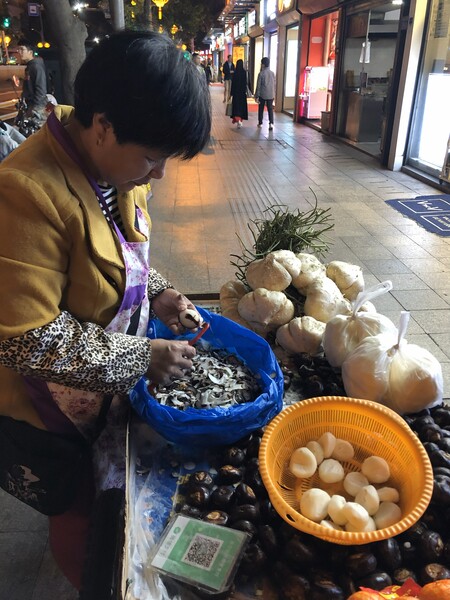 2017年在福州,掃碼購物已成為人們生活中的必須。無論是年輕人在店裡點餐,或小販在路旁賣菜,掃二維碼付款已是隨處可見。京東無人超市外,人們正在研究如何進入購物。