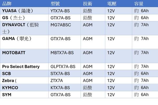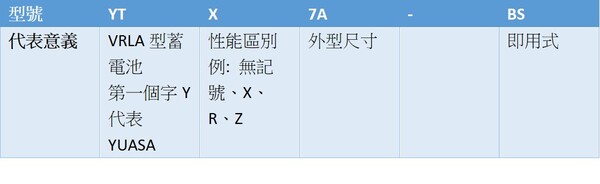 常見機車電池型號解析(例:YUASA YTX7A-BS)