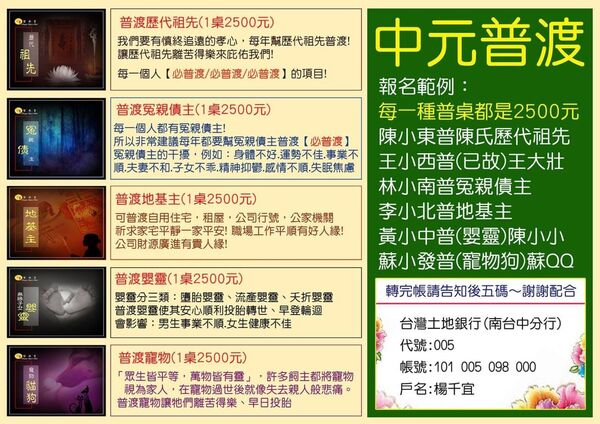 「中興 聖安宮」的中元普渡並不是如一般宮廟的「讚普」