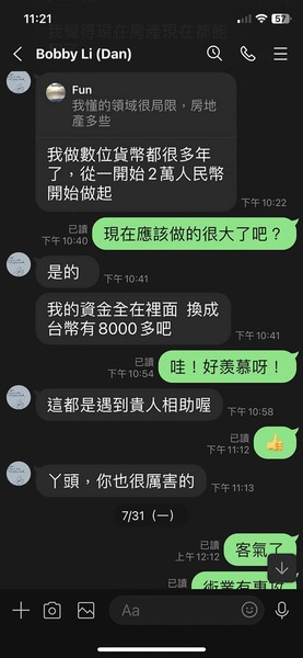 社群成員平時大多閒話家常,偶爾才會貼出高額獲利對帳單,降低被害人戒心,進而決定小額入金嘗試。但其實這些成員九成以上都是集團安排好的暗樁,所有與獲利相關的對話,都是為了強化被害人的從眾心態。