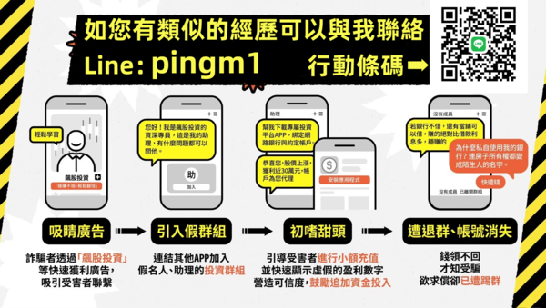 詐騙集團常透過 LINE 投資群組,冒充「專業投資老師」,推薦毫無價值的股票。投資人一旦跟進買入,就會遭到捲款跑路,血本無歸。