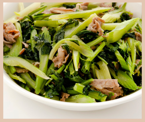 10月~4月為芹菜盛產期。芹菜口感清脆富含營養價值及膳食纖維,具有降血壓、助排便的功效。台灣芹菜香味較濃可添香氣,很適合炒菜。芹菜梗的清新香氣搭配五花肉片,簡單蒜炒,鮮嫩清爽,簡單美味的家常菜三兩下即可上桌,除此之外,也非常適合當作便當菜,兼顧營養與美味的簡單懶人料理!