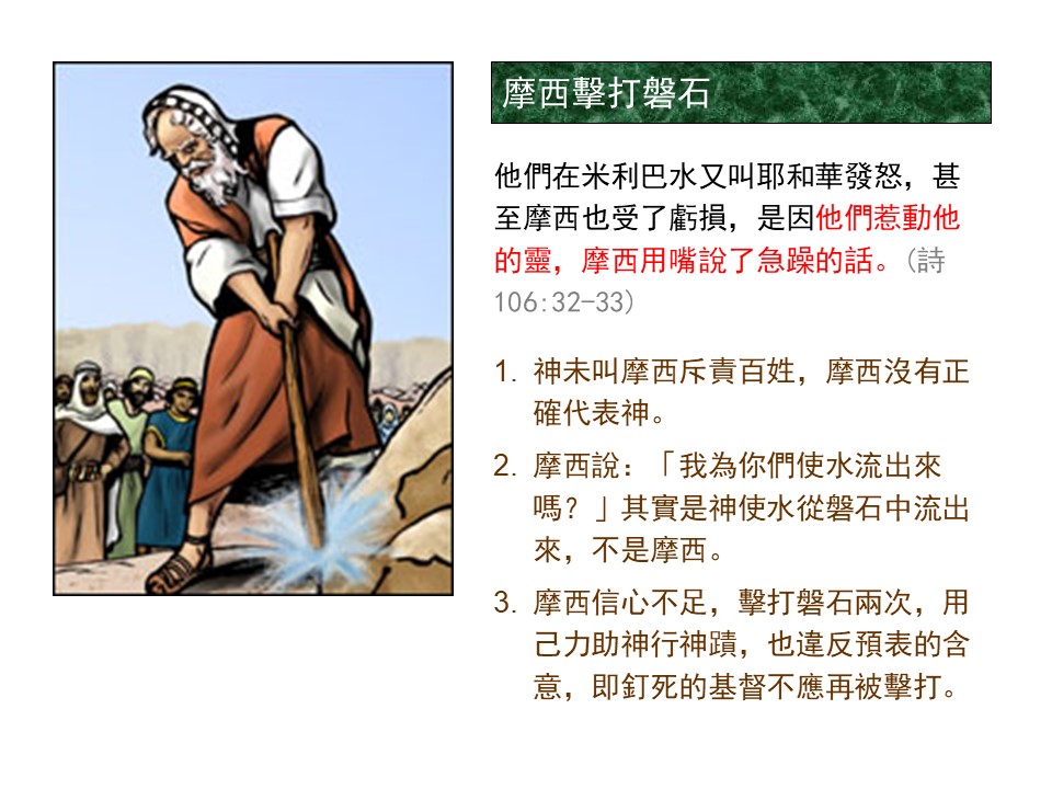 這提醒我們:領袖也當謹守遵行神的話,不可因情緒或壓力偏離神的指示。神的聖潔不容輕慢,甚至忠僕也需為過失承擔後果。
