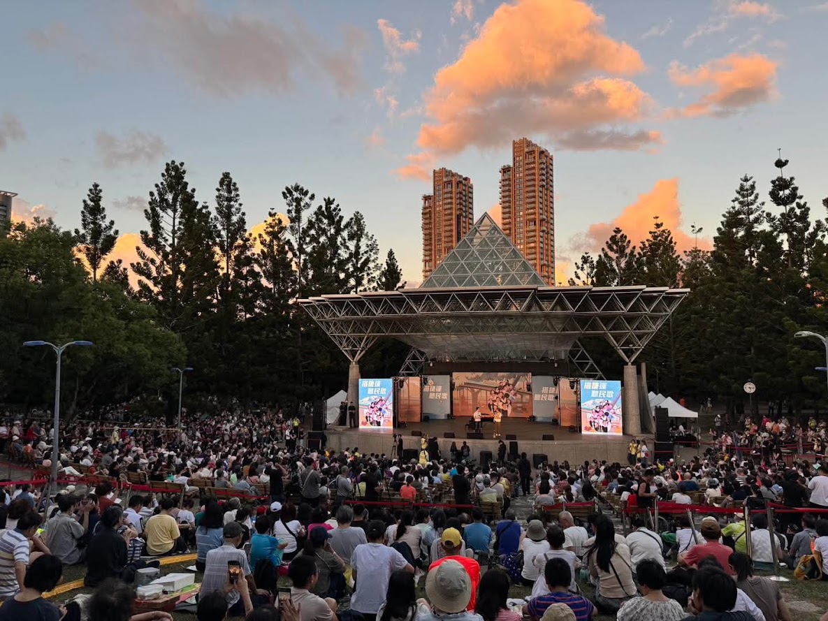 上個月,我在大安森林公園參觀「搭捷運聽民歌」的公益演唱會。活動在公園的露天音樂台舉行,邀請多位民歌手同台獻唱。演唱會不僅慶祝民歌50週年,也藉此鼓勵民眾多搭乘捷運,結合音樂與環保理念。