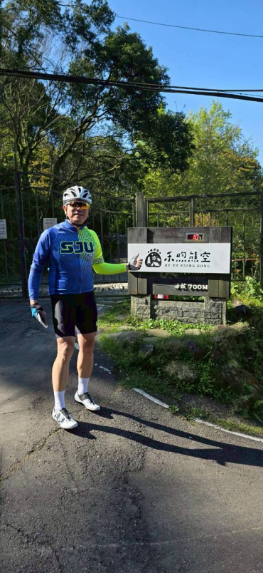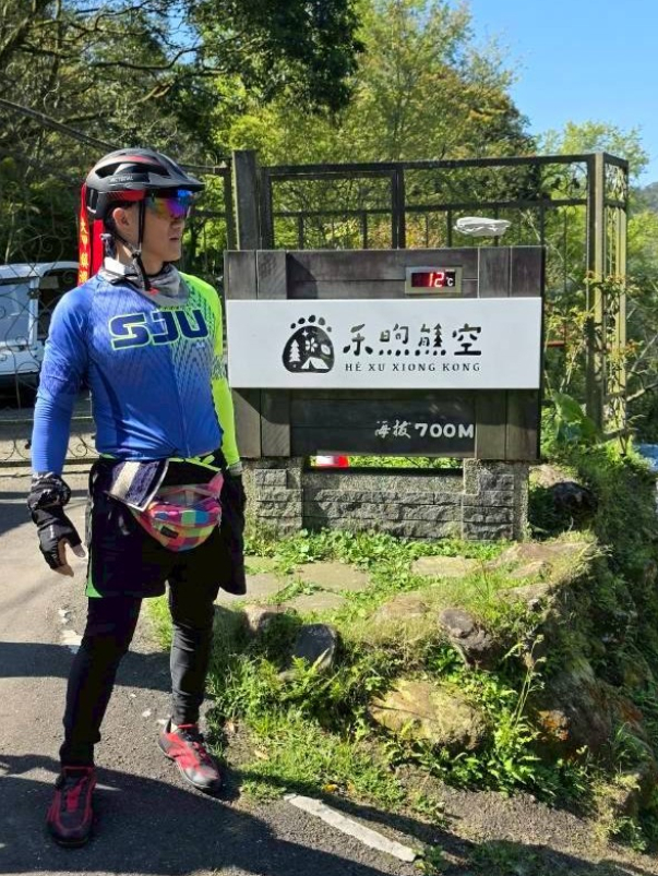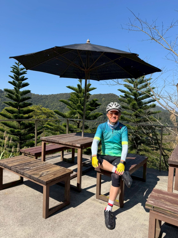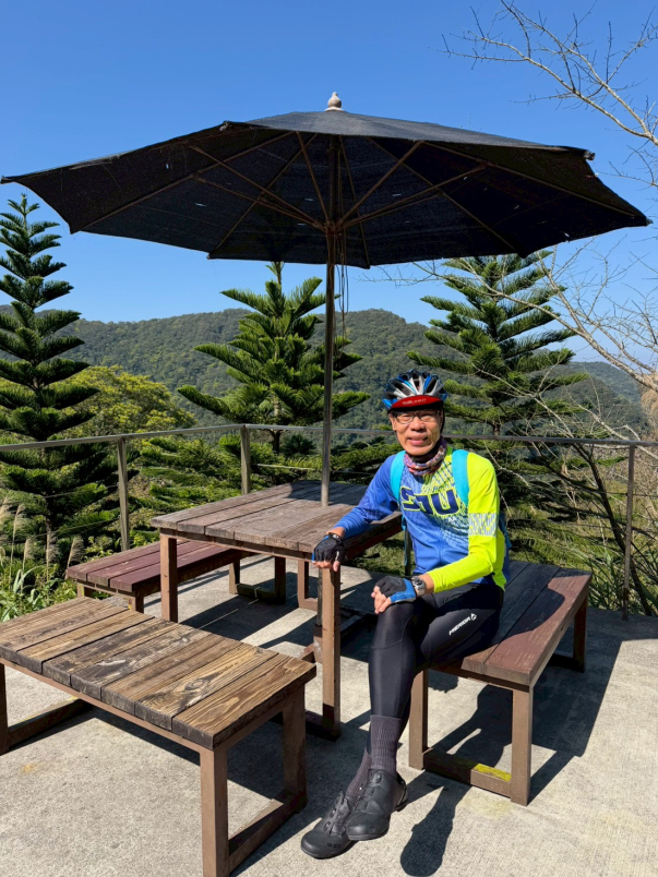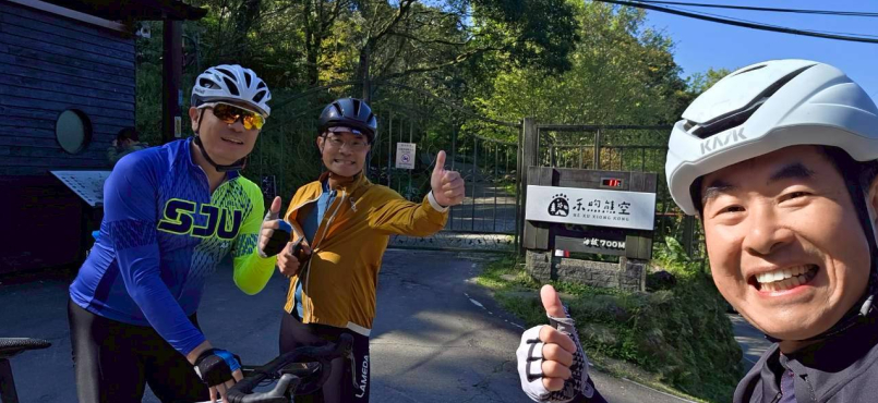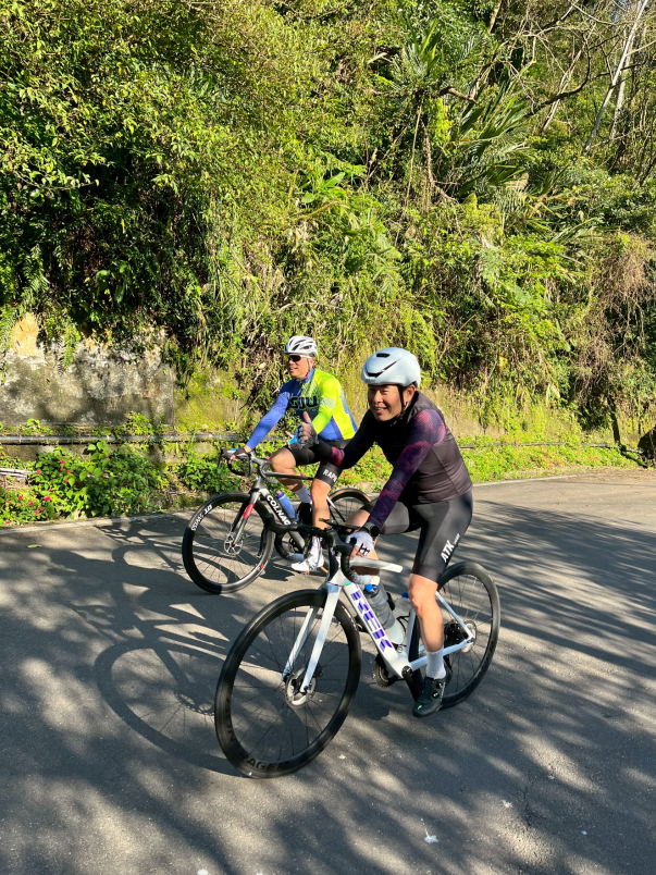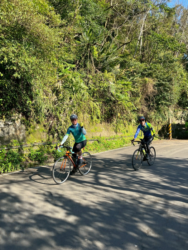 車隊沿著大漢溪右岸的自行車道一路前行,河岸景色靜謐,晨風徐徐吹來,騎在平坦的河濱車道上格外舒服。隨著太陽漸漸升起,天空也越來越明亮,為這趟騎旅揭開美好的序幕。接著銜接市道110線,再轉入北109線,真正的爬坡挑戰也隨之開始。山路一路向上,坡度時緩時陡,有些路段甚至超過16%,對腿力與耐力都是不小的考驗。大家依著自己的節奏踩踏前進,在山林間彼此加油打氣,氣氛既熱血又愉快。