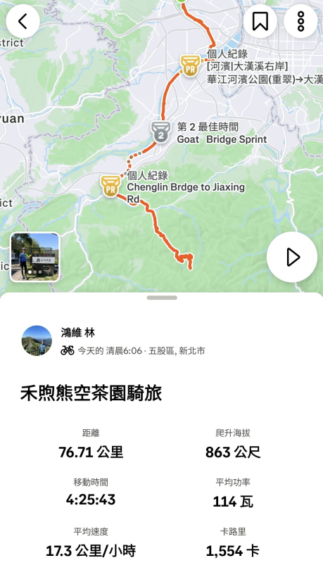 今天是校友單車社三月的約騎活動,目的地是位於三峽山區、海拔約700公尺的禾煦熊空茶園。清晨六點多天剛微亮,我便從蘆洲家裡出發,帶著期待的心情騎往集合地點。清晨的街道還帶著一點睡意,空氣微涼而清新,讓人精神特別好。6點50分抵達新月橋(板橋端),和學弟及同學們會合。大家互相寒暄、拍完團照後,7點整準時出發。