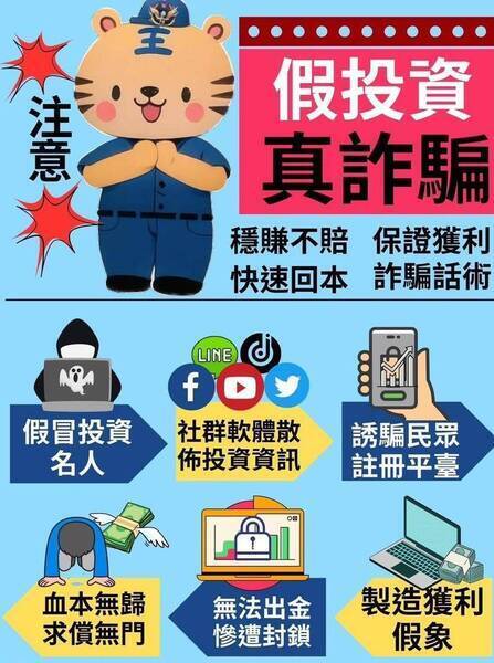 宣稱掌握各種「投資技巧」、「內幕消息」、「穩賺不賠」、「低成本高回報」的都是詐騙話術!不要輕信,切勿轉帳。