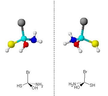 7. 有許多方法可以分辨成對的鏡像異構物彼此的差異。特定鏡像異構物的「絕對組態absolute configuration」,依據「坎-殷高-普利洛優先法則Cahn-Ingold-Prelog rules」分類。
