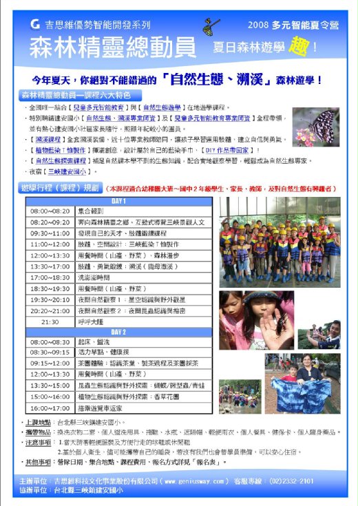 (2) 成人組團前來體驗真正的自然生態體驗活動,幫助自己打開許久不用的五覺