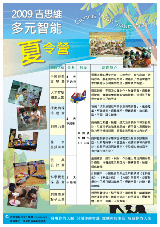 2009兒童夏令營---認識自己的優勢智能與鍛鍊篇