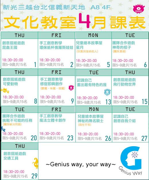 2010年 4月 新光三越 A8館4樓文化教室,老爹老媽的親子活動,免費好康訊息