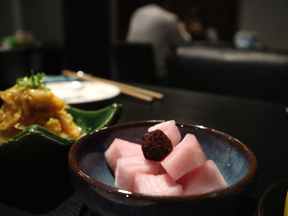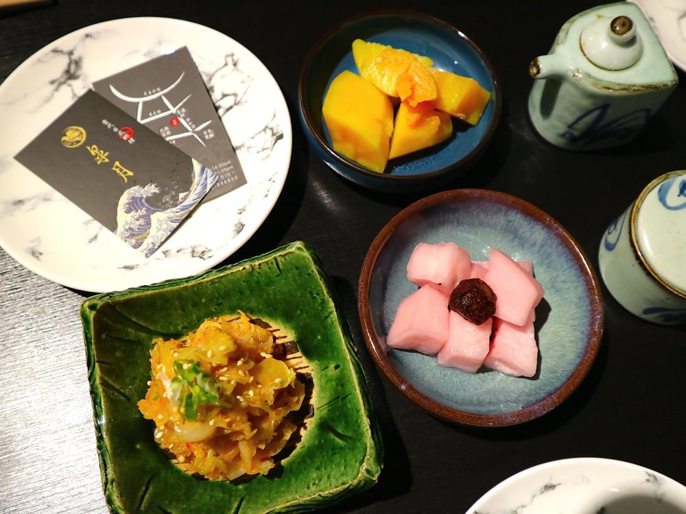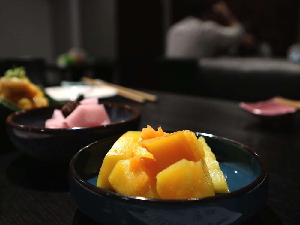 (先付)糖煮地瓜/紫蘇大根/店家自製黃金泡菜