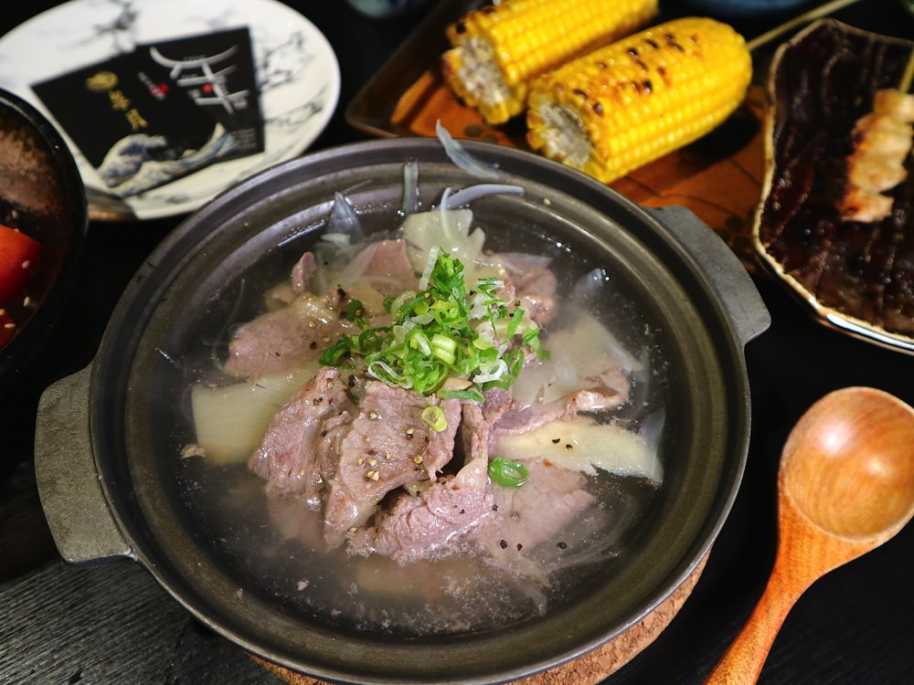 鍋湯送上,有著滿滿的薑片和洋蔥絲,牛肉擺放的像朵花