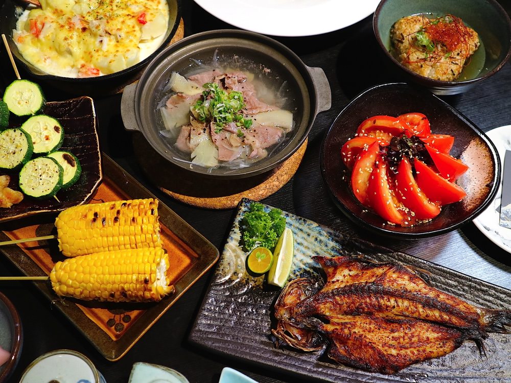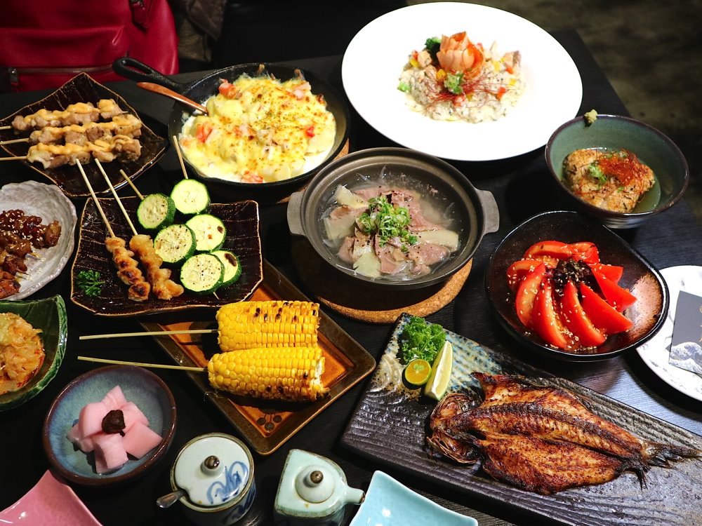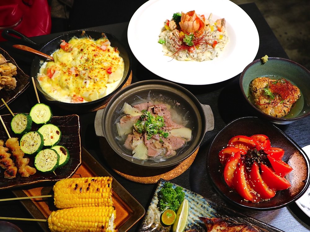 (烤物)烤節瓜/雞腳筋/雞膝骨/七里香/午魚一夜干/玉米/海膽烘蛋/雞肉明太子/明太子漁夫洋芋燒/