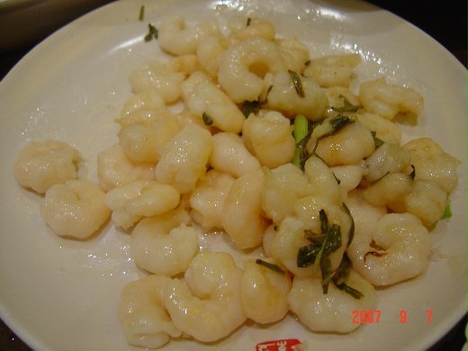 龍井蝦仁(圖2): 雖非河蝦, 但是有炒出龍井茶葉香, 比起台北的香吉士更高一籌.