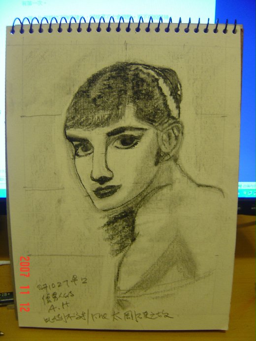 AUDREY HEPBURN五官很鮮明,且相當有個性。故也很難畫出其眼神。凡事總有第一次。