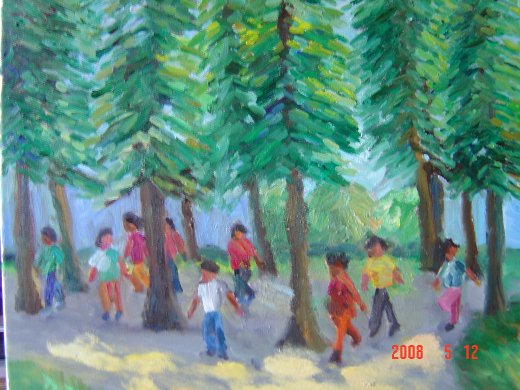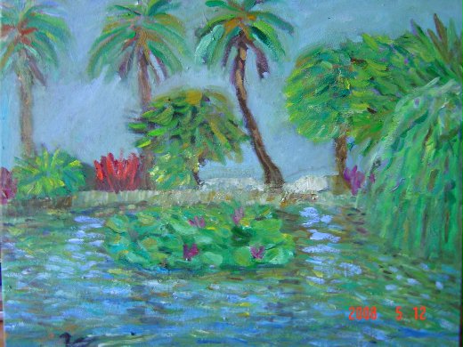 最近的寫生課都去公園,奇怪的是每天都很熟悉的事物,透過想像卻呈現不同的面貌,無論是別人寫生(圖1),椰子樹與湖(圖2),以及在晨間運動的婦女們(圖3),都是讓自己耳目一新,所以畫畫不是追求名勝古蹟,而是畫自己身邊熟悉的事物。