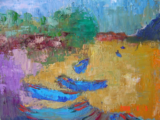 前一陣子去看台陽畫展回來後,我發現以厚塗以及非固有色的高明度顏色,可以更突出主題,且半抽象也是一種趨勢。故嘗試在之前失敗之作上面,直接以畫刀厚塗,效果還算不錯。
