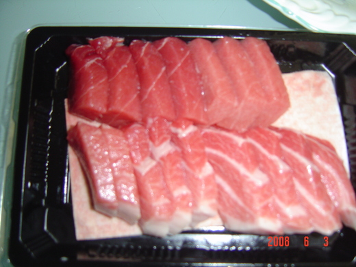 哈!拖老公之福前天有人快遞東港鮪魚生魚片,就成了晚餐。吃到一半才想到要照相,前幾片味道很甜,但是吃到最後有油肉分離的感覺。