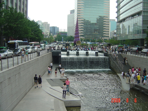 另外往北走經過明洞, 看到清溪川最有名的一段
