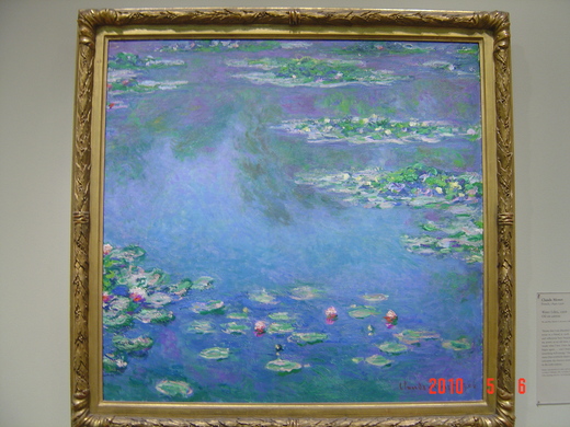1. 晚年的水蓮(water lilies),風格頗類似張大千晚年因眼睛不好,故改「寫意」而不寫實,而有朦朧、抽象之美。