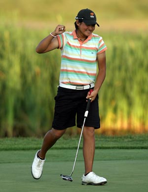 第十六洞她的配對韓國名將 Seon Hwa Lee 用一號木杆開球,小妮子卻拿出三號木。大家正擔心間她已經開出比 Seon Hwa Lee 還遠的一記漂亮直球。那種全場驚嘆、歡呼、叫好、,令人久久難忘。