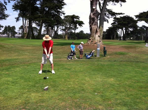 星期天是打球天,在舊金山 Harding Park 球場,和三十年球友老柳及其長子 How。我們今天不開車,四個人都走路。