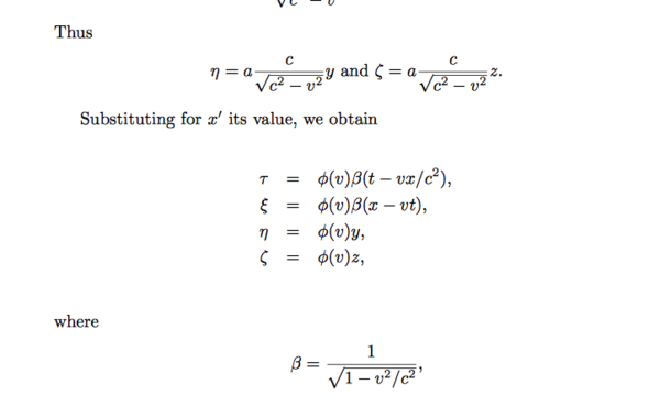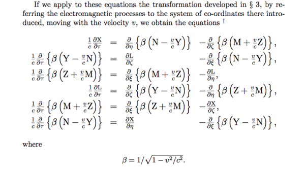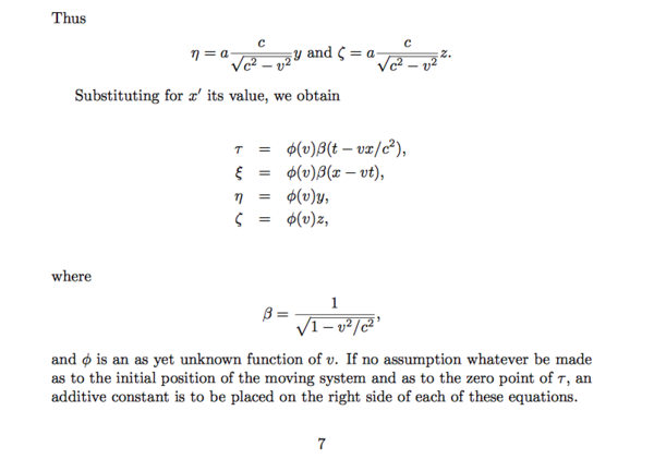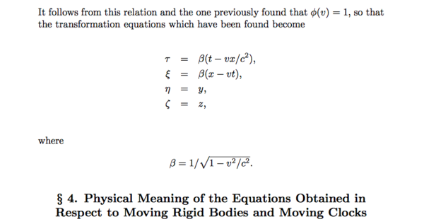 這是已經從德文翻成英文的 paper。不管看懂多少,羅倫茲因數的存在比比皆是,時間、空間,全部一樣: