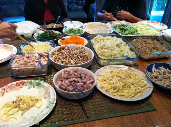 這和英文裡的 rumbia 一樣都是潤餅也。潤餅的英文我在唸高中時字典裡意外發現,讀音類如閩語「潤餅」,拼法想不起來,現在找也找不到,但應是潤餅無誤。