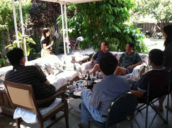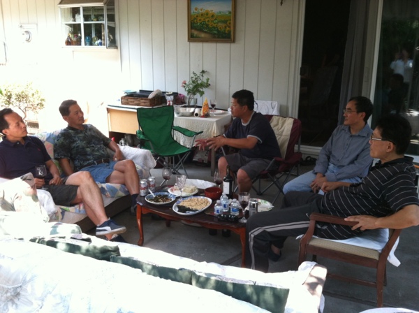 星期六是在朋友家吃潤餅喝酒聊天的好日子。男的在後院喝酒兼吹牛,女的在裡面弄吃的還有 serve。ㄟ...反正裡面最好看的衲個就是我啦!