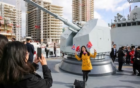 解放軍海軍護衛艦揚州號、黃岡號及綜合補給艦高郵湖號10月2日到達英國倫敦金絲雀碼頭港口停泊,進行五天的友好訪問,在訪問比利時安特衛普港並在丹麥停留後,解放軍海軍第26護送任務組的海軍護衛艦星期一在倫敦金絲雀碼頭停泊,五號開始由中國駐英國大使劉曉明主持訪問典禮,這次訪英是中英兩國軍事關係轉變的新歷史,以前日不落國的大英海軍縱橫五湖四海、四處侵略、耀武揚威,並發動鴉片戰爭把大清帝國打入次殖民地,讓中國承受了四百年的屈辱,如今中國的現代化軍艦和平進入英國倫敦,不只英國媒體感嘆!所有華夏兒女也驚呼!中國強大了!此次訪問預計將讓英國和其軍方有機會看到中國不斷壯大的軍事實力和對世界和平的不懈貢獻,艦隊司令及艦長王忠才表示將對英國公眾開放,所以人們可以更加了解中國及其海軍,特別嘉賓還將舉辦多次甲板招待會,中英兩國海軍星期四也將舉行聯合人道主義救援研討會。