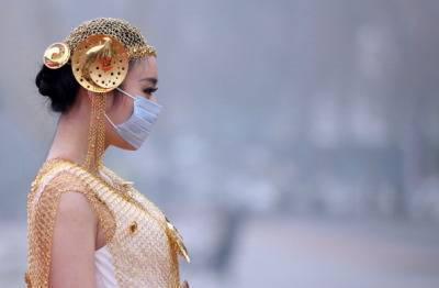 報載醫院護理人員說,近日上呼吸道感染患者原本就增加,霧霾來後到診病患咳得更嚴重,可能與空氣品質有關,民眾外出最好戴口罩,普通布質口罩無法過濾汙染物,最好使用醫療口罩,尤其呼吸道、心血管疾病的患者,更要小心注意。陸霾害侵台,帶動口罩、空氣清靜器供應商等業績成長,大陸近年空氣污染日益嚴重,台灣也受到霾害攻擊,口罩、不織布廠商及霾害概念股,可望率先受惠。政府更應積極輔佐不織布生產商致力發展抗菌、環保產品,成立相關生技公司,生產霧霾防治產品創造台商利潤及龐大商機。圖8及圖9是中國大陸模特兒戴口罩展示情形, 在霧霾陰影下,口罩的設計除實用外亦可增添美感。