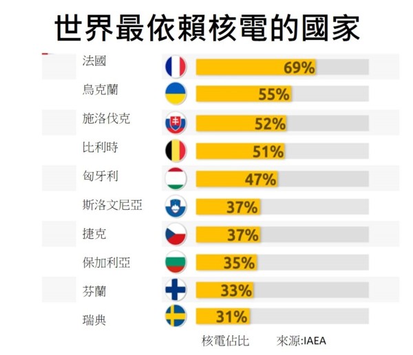 俄烏戰爭爆發後,新一波能源危機正在席捲全球,不管是天然氣、石油還是煤炭都價格飆漲。俄羅斯供應德國一半以上的天然氣、一半的煤炭和大約三分之一的石油。如果俄羅斯斷供能源,廢核的德國經濟將崩盤。德國是可再生能源的領導者,但淘汰核電使其更加依賴煤炭發電及國外輸入電力。德國為履行氣候改善承諾,採取了激進的減碳政策。德國本來預定在2022年全面淘汰核能發電,在2030年徹底淘汰燃煤發電,德國科技發達,大力發展可再生能源確有成效,2020年可再生能源發電佔比已達到51.8%,預計到2030年,可再生能源發電配比將達到65%,但是應該很困難,風力及太陽能都需要大面積土地或海域,德國比台灣面積大10倍,但也無法完全靠可再生能源供電。風電、光伏等綠色能源穩定性差,一旦遇到什麼意外情況無法保證國家能源安全。例如歐洲去年風力極弱,導致德國的風力發電不足而靠輸入國外能源。諷刺的是,廢核反而還讓德國的污染以及二氧化碳排放量迅速上漲。近期歐洲天然氣價格飆升10倍,電價也飛速上漲,在尋求可再生能源轉型時也要顧念民生經濟。可再生能源供應體系在極端天氣下可能失靈必須考慮,風力及太陽能發電後的儲能問題也須解決,世界發展綠色低碳經濟的共識已愈發高漲,碳中和逐漸成為各國的共同追求。今年以來,風電、太陽能、水電等可再生能源在美國、歐洲和亞洲都未能填補削減化石能源使用帶來的能源缺口。美國電動車大廠特斯拉執行長馬斯克再度表示歐洲應重啟核能發電廠。
