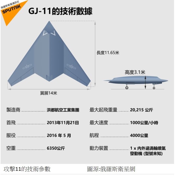 如果敵方發現了殲20的位置,殲20還可以派無人機前去干擾,給殲20爭取更多的撤退時間,從而將損失降到最低!除了以上這些,攻擊11隱身無人機未來還將具備上艦的能力,早在2018年中航工業發布的宣傳片中,就曾出現過機翼可摺疊的艦載版攻擊11。未來可能會搭載到山東艦或者003號航母上。屆時搭配上大型預警機,新一代隱身艦載機,電子戰飛機等,戰力會質的飛躍!攻擊11以前稱作「利劍」,而利劍無人機是沈飛製造的,因此有理由相信攻擊-11也是沈飛的。作為中航工業的龍頭企業,沈飛在打造中國航空裝備中有特殊貢獻。在去年亞塞拜然與亞美尼亞的衝突中,亞塞拜然的TB-2無人機大出風頭,對亞美尼亞造成嚴重打擊,但對於具防空能力的大國而言,像TB-2這樣的低空、低速、小型化的非隱身無人機基本上沒有什麼用,無人機只有具備較強的隱身性能,較高的突擊速度,較大的作戰半徑以及強大的信息化能力才能在未來戰場上叱詫風雲。目前世界上唯一具備上述特點的無人機是攻擊-11無人機。攻擊-11採用了飛翼式氣動布局以及背負式進氣道設計,沒有垂直尾翼和水平尾翼,表面光滑平順,雷達反射截面積(RCS)比B-2、F-22這樣的隱身飛機更小,擁有更加優秀的隱身性能。攻擊-11無人機的發動機尾噴口進行了非常專業的隱身化設計,呈現鋸齒狀,不但可以散射雷達波,還能有效降低尾部的紅外特徵。此外,攻擊-11無人機內置有兩個彈倉,可將武器內置於彈倉之中,避免了武器雷達信號的反射,進一步提升了隱身性能。攻擊-11有兩個武器艙,對稱位於無人機的三個起落架之間,每個艙有四顆製導炸彈。採用飛翼設計,隱身能力強,亞音速巡航效率高。攻擊-11隱身無人機採用飛翼設計類似美國的 B-2 戰略轟炸機,具有強大的隱身能力,能夠潛入敵方領土深處,並利用隱藏在武器艙內的武器對關鍵敵對目標發動襲擊。若此種無人機發展出電子戰能力則可能會對台灣空防產生重大影響,其隱身能力可先剷除台灣防空雷達及導彈基地。中國已經擁有攜帶干擾吊艙的J-16D戰鬥機,雖然一些 J-16 具有雷達吸收塗料,但利劍的隱身性能更好,在與 J-16D 協同工作時,可輕易躲避台灣的空防。