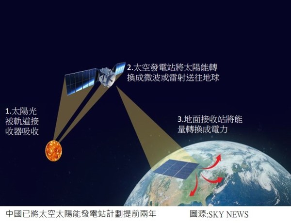 海峽兩岸的科技發展差距愈來愈大,兩岸領導人的視野及胸襟相差也愈來愈大,《自然》網站發表的世界各國科研排名,台灣第21名慘輸給中國大陸的第2名,中國政府非常了解西方國家對氣候變遷改善的重視,因此在新能源轉變中大力發展太陽能及風力發電等可再生能源,這兩項清潔能源都取得世界第一的好成績。在太陽能光伏產業,中國已佔據全球的統治地位。產業鏈最上游的矽料產能佔到全世界的2/3,矽片佔到97%以上。電池片的產能佔到80%多,組件的產能占到了全世界3/4以上。但是太陽能在地面的利用率其實並不高,易受到天氣、時段等影響,同時能量密度變化巨大,很不穩定,但太空中的太陽能卻非常充裕。如果人類能在太空中建造太陽能發電站,則電動汽車將可隨時隨地充電非常方便,這是能源使用的大突破,而中國已展開太空太陽能發電站的研發。如果在3.6萬公里高度的地球同步軌道上建設太陽能電站,太陽光不會被大氣削弱,也不受季節、晝夜變化影響,99%的時間內可穩定接收太陽輻射,且其強度是地面的6倍以上。與化石能源相比,太空太陽能是一種高效、持久、清潔的能源。太空太陽能電站可以無線方式將電能穩定傳輸到地面電網,太空太陽能發電站還可為宇宙飛船供電,使航天器擺脫巨大的太陽能板。中國自2008年起就將太空太陽能發電站研發工作納入國家先期研究規劃。近年來,提出了平台非聚光型、二次對稱聚光型、多旋轉關節以及球型能量收集陣列等空間太陽能電站方案,同時在無線能量傳輸等關鍵技術方面取得了重要的進步。2019年,中國首個空間太陽能電站實驗基地在重慶啟動建設,名為“逐日工程”的空間太陽能電站系統項目也在西安電子科技大學啟動。