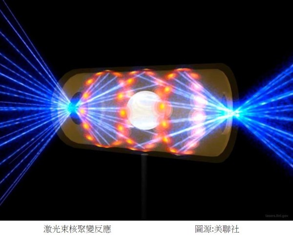 美國能源部12月13日宣布,勞倫斯利弗莫爾國家實驗室(LLNL)實現了歷史上第一次可控核聚變實驗,且該反應產生的能量超過所消耗的能量具有實質提供能量的意義。該實驗投入205萬焦耳能量,產出315萬焦耳能量,但只有當產出能量為輸入能量10倍時才有商業價值,此次實驗進展讓核聚變發電距離實現更近一步。美國科學家稱他們的巨型激光已產生核聚變,十層樓高的NIF 設施是世界上最強大的激光系統,它將192束光束瞄準一個由黃金和貧鈾製成的微型圓柱體。圓柱體內部的鑽石膠囊充滿了氫的兩種同位素,它們可以融合在一起釋放出驚人的能量。勞倫斯利弗莫爾國家實驗室主任布迪爾稱要實現商業核聚變發電,還需要做許多努力。美國能源部核聚變進展消息發布時,美國總統拜登正致力於發展清潔發電,並且特別強調了核聚變。太空中只有太陽能及核能可使用,而太陽的能量也是來自於核聚變反應,愛因斯坦的相對論提出物質質量的減少可轉換成能量,在物理上,核分裂或核融合都會放出巨大的能量,核能的應用需要循序漸進,一般分為核分裂、快滋生及核融合三步驟。所謂人造太陽就是以超導體磁場約束離子,通過能波加熱,讓等離子氣體達到上億度的高溫,發生核聚變的裝置,就像太陽一樣能為人類提供源源不斷的能量。核聚變產生方式目前主要有二種:(1)慣性約束核聚變:用激光照射含有微量氘氚元素的直徑數毫米小球,使球溫度升高至數億度,內部氣體變成高溫等離子態。在反沖作用力下元素被壓縮到極高密度後產生熱核聚變(2)磁約束核聚變:在一個封閉環境內將氣體加熱到數億度讓原子核發生聚變反應。沒有任何材料可製造成容器壁來容納數億度的高溫,需製造一個強磁場讓超高溫等離子被約束在一定空間內環繞磁場高速運轉。