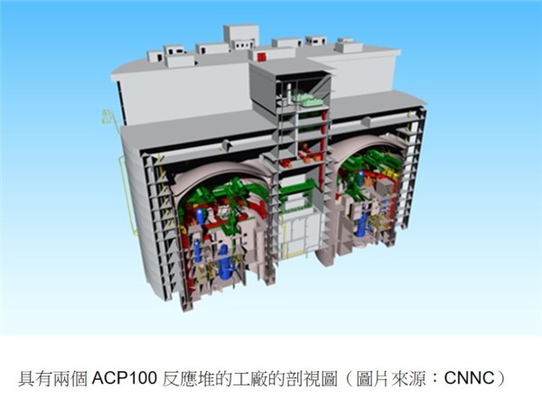 2021年7月13日,中國大陸中核集團的“玲龍一號”(ACP100)海南昌江多用途模塊化小型堆科技示範工程正式開工,發電功率12.5萬千瓦,建設週期為58個月,預計2026年建成。玲龍一號採用既能發電還能用於取暖和海水淡化的設計。海南昌江核電基地將成為中國小型反應堆發展的一個起點,為了開發和推廣小型多功能反應堆,中核集團2011年即與原中國國電集團公司組建成立中核新能源公司。2016年,中核集團自主研發設計的ACP100成為世界首個通過國際原子能機構(IAEA)安全審查的小堆技術。中核集團ACP100總設計師宋丹戎說,機組容量越大成本越低,這種“規模效應”對小堆不利,但小堆的低投資成本、較短工期、特殊應用及機動性優點可彌補。