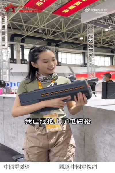 據中國軍視網報導,中國軍工已經推出了電磁驅動的武器系統,包括電磁炮及電磁槍。電磁槍可藉電磁力的大小調整子彈威力,可以發射非致命性彈藥作多種用途。近些年來,中國接連在電磁彈射與電磁炮等軍事領域以外推出電磁武器,繼消防滅火、電磁橇之後再次推出電磁槍,這些裝備都是利用電磁發射的基本原理就是通電的導體在磁場中會產生運動即物理學中的法拉第定律。中國官媒近日展示了中國電磁槍的實彈測試場景,引發外界高度關注。電磁槍擁有噪聲小、無火光、小槍口閃光、低後坐力及沒有彈殼等特點,其隱蔽性是未來武器發展的一個方向。另一方面,電磁發射技術本身也有更多的應用領域。這款電磁槍曾在2022年於廣東珠海舉辦的第十四屆中國航展上首次面向公眾亮相。在航展期間,這款標註名為“手持式電磁驅動武器系統”的裝備外觀科幻與常規槍械類似的大小以及奇特的扁平槍口給外界留下深刻印象。在實彈測試中,3毫米厚的木板、可樂瓶、啤酒瓶、西瓜等目標被電磁槍發射的子彈輕易擊穿,常見的汽車車窗也被穿透,車門上則是留下了明顯的彈坑。在測試中,電磁槍發出的噪聲很小,沒有火光,沒有煙塵,沒有彈殼,後坐力也很小。研製單位工作人員表示,電磁發射的一個特點就是隱蔽性很好,這也是未來武器的一個發展方向。