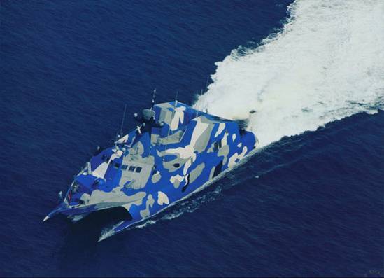 依據俄羅斯軍工綜合体新聞網報導,世界各國輕護衛艦和導彈艇的發展趨勢在20世紀下半得到迅速發展,但后來發現其戰鬥力相對較弱,主要是防空能力和偵察水平低下,無法對抗大型艦艇,現在發展趨勢明顯受限,且海軍實力越強,輕護衛艦和導彈艇的比例就越低。俄專家指出,上世紀60-80年代,世界各國輕護艦和導彈艇的發展極為迅速,主要是受到埃及和印度海軍引進俄製導彈艇在1967年10月和1971年12月的實戰勝勝利所推動。但被當時最新式的P-15反艦導彈擊沉的以色列和巴基斯坦驅逐艦是英國在40年代所建,當時並無反艦導彈武器的存在。通過多次戰爭,世界各國開始明白,由於防空能力低,偵察手段少,導彈艇只能在與類似快艇的戰鬥中獲勝,對於作戰飛機而言,導彈艇簡直就是浮動靶標,現代大型水面戰艦幾乎總能在與小型艇的戰鬥中獲勝,因為他們能够更早地發現及攻擊對方,即使輕護衛艦和導彈能及時向護衛監、驅逐艦發射反艦導彈,后者也能予以攔截,而導彈艇則無能力反擊。非常弱小的防空能力,及幾乎為零的反潛防禦能力,事實上大大降低導彈艇的攻擊力。許多國家由於經濟能力有限,仍把此級别的艦艇當作海軍的根基。當中國大陸022型高速穿浪型導彈艇10年前下水時(圖4~5),我們看到的是一種將隱身技術發揮到極至的水面武器,作為小型突擊艇,022型不需要安裝大量探測裝置,僅靠戰術數據鏈接受大型艦或預警機提供的數據就可遂行攻擊任務,因此艦體和桅杆上相當簡潔適合隱形。同時022型未用螺旋槳推進而是使用4台噴水推進器,高速航行噪音和震動低的多,更不易被偵測到,加上新型防紅外海洋迷彩,將自身的可被探測機率降到最低。022型導彈艇吸收了目前全世界最先進的隱身手段,對中國海軍來說是一種技術革命的裝備,隱身技術的運用已是下代艦艇的潮流,從技術創新和技術超越的角度看,把022型高速穿浪導彈艇尺寸放大,將是更好的選擇。